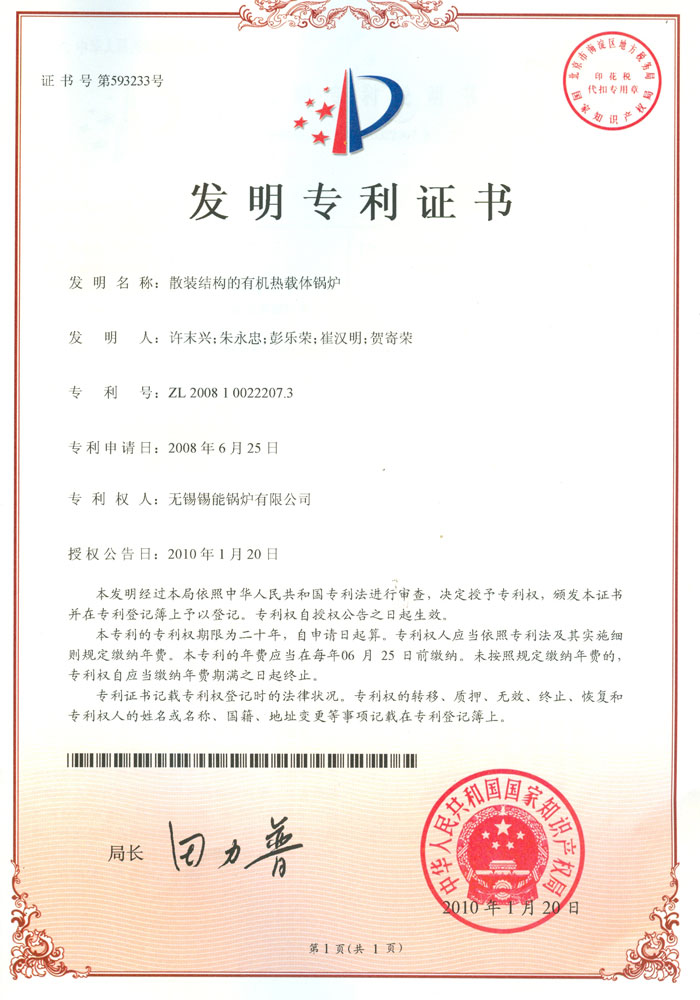 • 发明专利200810022207.3散装结构的有机热载体锅炉